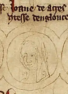 Joan of Acre (April 1272 – 23 April 1307) was an English princess, a daughter of Edward I of England and Eleanor of Castile.[2] The name "Acre" derives from her birthplace in the Holy Land while her parents were on a crusade.
