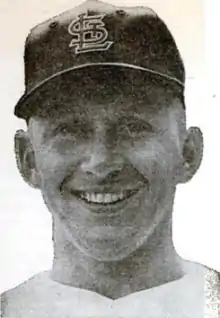 Cunningham played four seasons in the minor leagues from 1949 to 1951, and the first part of the 1954 season.[3] He served in the military for two years during the Korean War.[4][5] He made his MLB debut on June 30, 1954, at the age of 22,[1] batting 2-for-5 with his first major league home run and five runs batted in (RBI) in a 11–3 win over the Cincinnati Redlegs.[6] In his first four major league games, Cunningham became the first Cardinals player to hit at least two home runs. This feat was equaled 62 years later on April 6, 2016, when Jeremy Hazelbaker also hit two home runs in his first four games.[7]