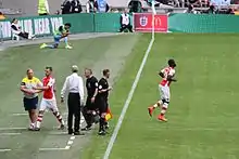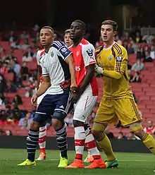 In September 2013, Campbell became the subject of controversy when video emerged of his off-the-ball dive against the United States' Matt Besler in a World Cup qualifying match. Besler received a yellow card and was suspended.[53] The footage generated discussion of the quality of CONCACAF refereeing, and whether such cheating should be eligible for post-match disciplinary action. Campbell's dive was described as "pathetic", "cynical" and "disgraceful".[54][55] On 13 September, the Costa Rican media reported that FIFA were investigating Campbell over the incident, although nothing came of the investigation.[56] On 4 October, FIFA officially reprimanded Campbell for unsporting behaviour.[57]
