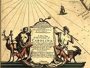 Cartouche from Joel Gascoyne's A New Map of the Country of Carolina (1682)
