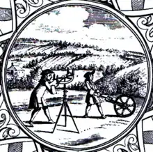 which to a modern surveyor seemed incredibly bad.[14] Measuring chains were not corrected for temperature. For longer distances a measuring wheel called a perambulator (see illustration) was used.