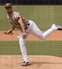 Lucchesi pitching for the San Diego Padres in 2018
