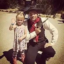Showman Joey Dillon with Berlin, daughter of Western children's author Lorin Morgan-Richards.