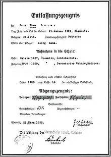 diploma of a student at former Bernsdorf school in 1935