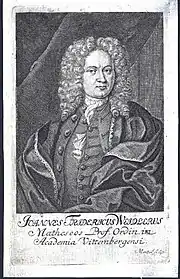 Johann Friedrich Weidler (13 April 1691 in Großneuhausen – 13 November 1755 in Wittenberg) was a German jurist and mathematician.[1]
