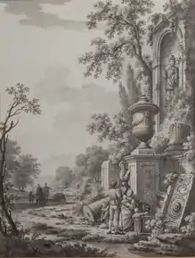 Johann Heinrich Müntz, classical landscape, ink drawing from the 1770s