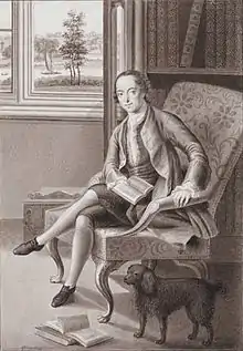 Horace Walpole in the Library at Strawberry Hill House, 1756 drawing by Johann Heinrich Müntz