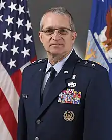 John Joseph Bartrum (born February 22, 1966) is an American lawyer and major general in the United States Air Force Reserve. Currently serving as a partner at Squire Patton Boggs, he was nominated by President Donald Trump to become the next assistant secretary for financial resources at the Department of Health and Human Services.[1][2] Bartrum was a member of the Senior Executive Service, serving as a staff member on the United States House Committee on Appropriations, as budget director at the National Institutes of Health, and as a staff member in the Office of Management and Budget.[3] In his role at the House Appropriations Committee, he helped to develop the Ebola virus disease supplemental budget.[2] He is a combat veteran with nearly thirty years of military experience in both active duty and as a reserve officer. He currently serves in the rank of colonel as the mobilization assistant to the Commander Air Force Medical Operations Agency.[4] The nomination was returned to the President on January 4, 2019.[1] Bartrum is a Fellow of the National Academy of Public Administration.