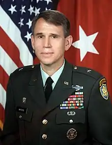 John Batiste was commissioned as an infantry officer from West Point (Class of 1974) and served in five US Army heavy divisions over the next 31 years. He is a two-time combat veteran in both the Gulf War (brigade operations officer/S3, 24th Infantry Division) and Operation Iraqi Freedom (commanding general of the 1st Infantry Division). Previously, he commanded the 3rd Battalion, 15th Infantry Regiment, 24th Infantry Division from 1991 to 1993, served as the operations officer/G3 of the 3rd Infantry Division from 1994 to 1995, and commanded the 2nd Brigade of the 1st Armored Division from 1995 to 1997, during which time the brigade was deployed to Bosnia-Herzegovina as one of the two US brigades during the IFOR mission to implement the terms of the Dayton Peace Accords from December 1995 through November 1996. Following brigade command, he was promoted to brigadier general in 1997 and served as the plans officer for NATO's Southern Region (1997–1999), assistant division commander-maneuver of the 1st Cavalry Division (1999–2000), Joint Staff/J8 Deputy Director for Joint Warfighting Capability Assessment (2000–2001), and as the senior military assistant to the Deputy Secretary of Defense (2001–2002). While working for the Deputy Secretary of Defense, he was involved in the early planning stages of the War in Afghanistan and Iraq War. He was promoted to major general in 2002 and in the spring of 2002 General Eric Shinseki chose Batiste to be commander of the 1st Infantry Division of the United States Army, which was deployed to Iraq from February 2004 to March 2005, during the war.[5] Batiste declined a promotion to the rank of lieutenant general and subsequently asked to be retired from active duty, because he was concerned about U.S. Defense Secretary Donald Rumsfeld's failed strategy and policies concerning the war.[6]
