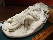 In 1837, the year in which Bell established his reputation, his works at the Academy included Psyche and the Dove and a model of The Eagle-Shooter, the first version of what was to become one of his most celebrated statues;[2][3] he also exhibited two busts, Amoret and Psyche, at the British Institution. [2] His Babes in the Wood was exhibited at the Royal Academy summer exhibition two years later. There are marble versions at Osborne House, and Norwich Castle.