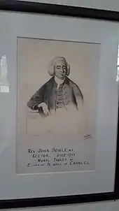 Print portraying Bowles, artist illegible, displayed in Idmiston church