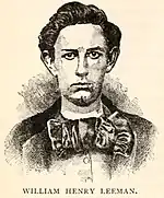 † William H. Leeman, 20, fought with the free-staters in Kansas for three years, beginning at the age of 17. He died during the raid.[21] Leeman, from Maine,[13]:24 youngest of all the raiders,[22] was shot and killed while trying to escape across the Potomac River. His sister, Mrs. S. H. Brown, published a letter of John Brown of November 28, 1859, which according to her had never been published. From it we learn he was killed not trying to escape, but trying to deliver a message of John Brown to Owen Brown or Cook.[22] He was reburied at the John Brown burial grounds.