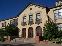 In "executive charge" of the campaign to build the school was Edna Fischel Gellhorn, a co-founder of the League of Women Voters.[6] The 18-acre site, located on the streetcar line from Clayton, was purchased for $18,000 ($310,000 today[7]) and the initial campus buildings, including a gymnasium, were built for $180,000.[8] Tuition was $500 per year, with scholarships available to up to 10 percent of students.[8]