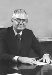 Visser began his tenure as KSTC's twelfth president on the February 15, 1967. Because Visser was very student-oriented, the university senates were established. The most notable accomplishment Visser is known for during his time at KSTC is organizing the school into different academic schools with departments.[1] Some other significant changes during Visser's tenure was the Teachers College hit an all-time enrollment of 7,150 in 1969,[7] and when KSTC changed its name to Emporia Kansas State College in July 1974 and then to its current name, Emporia State University in April 1977, when the school was granted university status.[8] Visser retired on June 30, 1984, with Robert E. Glennen succeeding him.[9]