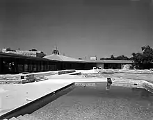 The John Gillin Residence is a large single-story Usonian house, designed by Frank Lloyd Wright in 1950 and built in Dallas, Texas, in 1958. The Gillin House is Wright's only residential project in Dallas. Gillin, a successful oilman, geophysicist and electronics "gadgeteer", commissioned Wright to design a work of art that would also be suitable for living and entertaining. A self-made man, Wright respected him and allowed him to design many details including all door hardware, the stainless steel kitchenettes and even the diving board support.