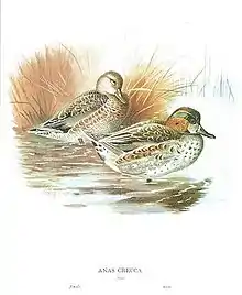 Millais is one of the most respected of British ornithologists and bird artists,[14] producing between 1890 and 1914 a series of books on birds and other natural history subjects. In the study of ornithology he was renowned for his portraiture of wildfowl and game birds, the subjects of his three most famous works: Natural History of British Feeding Ducks;[15] British Diving Ducks[16] and British Game Birds.[17] They rank amongst the finest work on wildfowl ever published. Each bird receives individual treatment in text and detailed chromolithographs, some of which are by his friend and pre-eminent bird artist of the day Archibald Thorburn (1860–1935). Each species is represented by two or three individuals on a plate drawn in attitudes of feeding, resting and courtship.