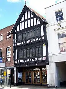 John Halle's Hall is a 15th-century late medieval building, a hall house, in Salisbury, England, with later 16th-, 19th- and 20th-century additions. The Hall is a Grade I listed building,[1] the top category, 'of highest significance'.[2] The medieval part of the building is now the foyer of a cinema,[1][3] with a Victorian mock-Tudor street façade added in 1880–1881,[4][5] together with the main cinema screening room built in 1931 behind the foyer. The noted architectural historian Sir Nikolaus Pevsner described this conglomeration as ' ... a great curiosity, a cinema with a grossly overdone timber-framed Tudor façade ..., and behind this façade the substantial and memorable remains of the House of John Hall'.[5]