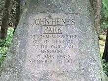 John Henes Park in Menominee is named after Henes, who donated the land for the 50-acre (20 ha) park in 1907.[2][3][13]