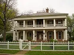 The John Hossack House is considered one of Ottawa's most beautiful houses. It is sited on the banks of the Illinois River overlooking the city. The building was designed by Sylvanus Grow and constructed by Alonzo Edwards. The house is a good example of Greek Revival architecture. Its details and proportions draw a conscious connection to the Classical tradition.[2]