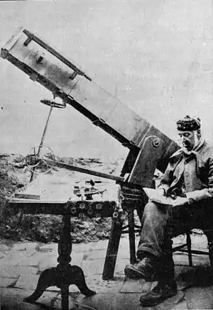 John Jones (1818–1898) of Bangor with his largest telescope, an 8-inch aperture reflector.