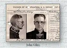 John Knight Giles (February 16, 1895 – February 8, 1979) was an inmate at Alcatraz prison, most well known for an escape attempt in 1945.[1][2][3] He was originally sentenced to the United States Penitentiary on May 11, 1935, for attempted robbery of the Denver and Rio Grande Western mail train; he had previously been serving a life sentence in Oregon for murder before escaping. Giles began serving his federal sentence for the attempted train robbery at McNeil Island on June 17, 1935, but due to his escape record and the length of his sentence, was transferred to Alcatraz Island on August 28, 1935.[4]