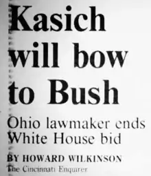 4. 1 2 "Kasich drops out of GOP race". CNN. July 14, 1999. Retrieved August 1, 2016.