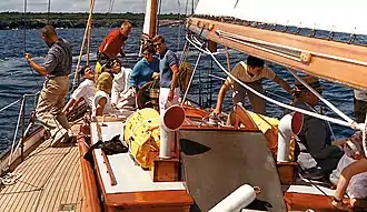 In 1962, Kerry attended Yale University, majoring in political science and residing in Jonathan Edwards College.[19] By that year, his parents returned to Groton.[20][21] While at Yale, Kerry briefly dated Janet Auchincloss, the younger half-sister of First Lady Jacqueline Kennedy. Through Auchincloss, Kerry was invited to a day of sailing with then-President John F. Kennedy and his family.[22]