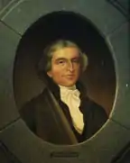 In Paris, Ledyard conceived a remarkably bold scheme of exploration with encouragement from Thomas Jefferson, then American ambassador, and with financial backing from the Marquis de Lafayette, botanist Joseph Banks, and John Adams' son-in-law, William Smith. Jefferson suggested that Ledyard explore the American continent by proceeding overland through Russia, crossing at the Bering Strait, and heading south through Alaska and then across the American West to Virginia. [1]