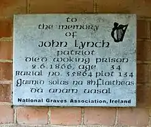 John was very active in the early days of the Cork Fenian movement.[1] He organised nationalist celebrations on St. Patrick's night 1862 at the Athenaeum club, Cork.[2] Lynch worked as an accountant.[3]