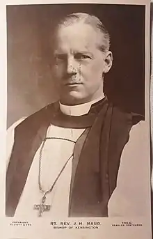 Maud was ordained in 1887 and his first appointment was a curacy at St John the Evangelist, Westminster.[3] He was Vicar at Chapel Allerton, Leeds from 1890 and at St Mary Redcliffe, 1904–11. He was consecrated a bishop on the Feast of the Holy Innocents 1911 (28 December), at St Paul's Cathedral, by Randall Davidson, Archbishop of Canterbury.[4] He served as Bishop of Kensington — the suffragan bishop to the Bishop of London with delegated responsibility for "West London" — until he died in post on 21 March 1932 aged 71.[5]