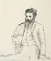 "The representative of Ashburton", wrote a newspaper reporter, "is about the wildest looking specimen in the Parliamentary collection. But if he is in the rough to gaze on, he can give 'points' to some more ornamental members in the matter of ability and originality of thought and expression. He is a sturdily built, carelessly dressed man, with a large head, made to look larger by the wild disorder of a huge shock of curly hair. He is a farmer and might have stepped out of his market trap into his place in the House. He is, as a rule, a breezy, happy-go-lucky sort of member with a good sense of humour and a fine stock of anecdotes and a great admiration for and acquaintance with the writings of Robert Burns."[7]