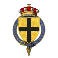 His Arms were Or, a cross engrailed sable. His son bore the same with a label of three points gules.[4]