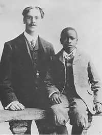 He once alleged to have had a relationship, with romantic overtones, with Oscar Wilde. Stuart-Young claimed to have first met Wilde in June 1894 as a teen, while dining at the Savoy. The two visited the Haymarket, he said, to see Wilde's Lady Windermere's Fan.[4] Stuart-Young even forged letters allegedly by Wilde to substantiate this.[5] Stuart-Young's memoirs of Wilde and the supposed letters were published in his 1905 volume, Osrac, the Self-Sufficient. According to Timothy D'Arch Smith, it is unlikely Stuart-Young had ever met Wilde. D'Arch Smith further states that the love of Stuart-Young's life was an Englishman named Tommy Todd.[6] Stuart-Young developed close relationships with several young African houseboys, including a mix-raced, 14-year-old boy named Ibrahim, referred to by Stuart-Young as 'the Unkissed', and an 11-year-old named Bosa, who he later took with him to England.