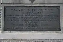 Plaque, 70th New York Infantry monument, Gettysburg National Battlefield, Pennsylvania.