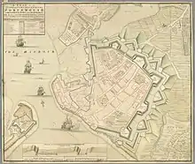 In the meantime, he had written a report and estimates for the large magazine at Purfleet in 1755, for fortifying Senegal in 1758 and for a military hospital in Sheerness in 1762-1763. Britain regained Dunkirk in 1763 and three years later Desmaretz, Frazer and William Roy drew up plans for two new channels at Mardyke. He never held military rank in the Royal Engineers, but was made a lieutenant colonel of artillery in 1761. He died in Dunkirk but his body was brought back to Portsmouth, where it was interred alongside his wife in Portsmouth Garrison Church. His daughter Mary erected an epitaph to him - she married Stillingfleet Durnford, Clerk of Deliveries in the Ordnance's civil branch, and with him had Desmaretz (an engineer in America) and Charlotte (who married Frazer). Frazer and Charlotte's son Augustus Simon Frazer commanded the horse artillery under Wellington during the Peninsular War.