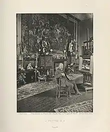 In 1866 he was elected an Associate of the Royal Academy, and in 1874 received full academical honours in succession to Sir Edwin Landseer. His diploma picture was Jacobites, 1745. Pettie was a hard and rapid worker, and, in his best days, a colourist of a high order and a brilliant executant. In his early days he produced a certain amount of book illustration. His connection with Good Words began in 1861, and was continued until 1864.[2] He painted a portrait of the painter James Campbell Noble RSA and this is exhibited in the Scottish National Portrait Gallery in Edinburgh. In 1894 a selection of his work was included in the Winter Exhibition of the Royal Academy. His self-portrait is in the Tate Gallery.
