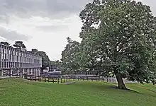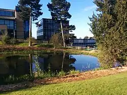 The large site has green open spaces between the individual teaching facilities.[5] The centre of the site is focussed around the lake, one of the original fishing ponds that were in the grounds of the Etwall Hall.