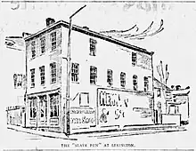 Slave pen of "negro-trader White" in Lexington, Missouri, illustration 1908.[24] According to Frederic Bancroft in Slave-Trading in the Old South "Lexington had two [resident slave traders] — one of whom 'was a wealthy planter of good repute', making a hotel his city headquarters and having a three-story building as a slave-pen. Platte City had a thriving trade, St. Joseph had at least one firm of slave-dealers, and Columbia and Marshall were not neglected by the traders. And the advertisements and the movements of the traders conclusively show a very active traffic in slaves because of the prices they would bring in the lower South."[23] - From a 1908 Kansas City Star article about Missouri in the American Civil War, "Lafayette county was intensely Southern to its sentiment. There still stands on Main street of the town of Lexington the building known as the 'slave pen' where 'Nigger Trader White'...kept unruly slaves whom he bought from their owners. When this dealer in 'black ivory' had a boat load sold to the planters down the river the 'pen' was emptied. To be sent 'down the River' was to a Missouri slave the greatest tragedy that could befall him."[24] According to Harrison Anthony Trexler in 1914, there were two slave traders named on an 1861 map of Lexington, one of whom had a three-story pen and was called J. R. White.[2]