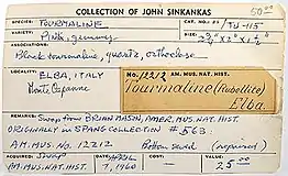 - ↑ Mitchelll, Richard S. 1986. "Who's Who in Mineral Names; John Sinkankas." Rocks and Minerals. Volume 61 (1), page 30.