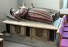 A descendant, George Southcote of Blyborough, Lincolnshire, became Sir George Southcote, 1st Baronet on 1 January 1662. The baronetcy became extinct in 1691.[1] A great-great-grandson of the judge, Sir Edward Southcote of Witham Place, wrote a family memoir that was published in the 19th century. His descent was via John (died 1637), son of the judge, who married Magdalen Walgrave; their son Edward who married Elizabeth Seaborne; their son Sir John who married Elizabeth, daughter of Walter Aston, 2nd Lord Aston of Forfar. He himself married Juliana Tyrwhitt, daughter of Sir Philip Tyrwhitt, 4th Baronet.[6][7][8]