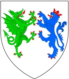 In 1479 John Tame, together with the Cirencester lawyer and clothier John Twynyho (d.1485), had obtained a lease of the demesne of the manor of Fairford from King Henry VII, to whom the manor had temporarily reverted during the minority of Edward Plantagenet (1475-1499) (later 17th Earl of Warwick), son of George, 1st Duke of Clarence, 1st Earl of Warwick (d. 1478) by his wife, the heiress of Fairford, Isabel Neville. Isabelle Neville was one of the daughters and co-heiresses of Richard Neville, 16th Earl of Warwick (d.1471) "The King-Maker" by his wife Anne Beauchamp, 16th Countess of Warwick (d.1492), who inherited Fairford on the death of her niece Anne de Beauchamp (d.1449), daughter of Henry de Beauchamp, 1st Duke of Warwick (d.1446), whose mother was Isabel le Despenser (d.1439).[8] John Tame (or his son) memorialised these noble families which had been connected with the manor of Fairford (de Clare, Despencer, Beauchamp) by the inclusion of their armorials (together with those of Tame) on the tower of Fairford Church.[9]