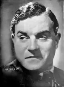 He took the stage name Tilley in memory of an old friend, and his performances became an immediate success. He appeared at the Windmill Theatre, and married Kathleen More, one of the theatre staff.[1][2] He first broadcast on BBC radio in early 1932, billed as "The Mutterer".[3] He also made several recordings of his monologues between 1933 and 1935, including "The Loch Ness Monster", "London Transport Board", "Cycling", and "The Scoutmaster", for the Columbia record label.[4] The actor Eric Barker praised Tilley for his "subtlety and his meticulously considered characters", and called him "a great comedian".[5]