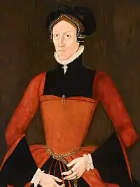 Joan Tuckfield (1506–1573),[3] wife of John Tuckfield, Mayor of Exeter in 1549–1550. 1573 portrait, British (English) School. Collection of Royal Albert Memorial Museum, Exeter, transferred from the collection of Exeter Guildhall in 1971