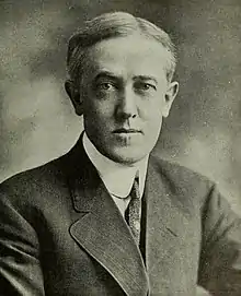 Davis served as President Wilson's ambassador to Great Britain from 1918 to 1921. He reflected deep Southern support for Wilsonianism, based on a reborn Southern patriotism, a distrust of the Republican Party, and a resurgence of Anglophilism. Davis proselytized in London for the League of Nations based on his paternalistic belief that peace depended primarily on Anglo-American friendship and leadership. He was disappointed by Wilson's mismanagement of the treaty ratification and by Republican isolationism and distrust of the League.[13] In his diaries Davis kept records of various developments in British politics at that time, such as social reform proposals and enactments such as unemployment insurance, profit-sharing,[14] a minimum wage law, and an eight-hour law. Davis’s diary also noted how prime minister David Lloyd George stated “that not only was his programme liberal but so liberal that his programme shocked an American Democrat.”[15]