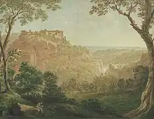 He returned to England in 1781 in the company of Francis Towne, travelling through the Italian lakes and Switzerland. He settled in Warwick, making frequent visits to Wales from 1784; he also toured the Lake District in the late 1780s and early 1790s.[3] In 1783 he married Elizabeth Gerrard still a minor at St Mary's church, Warwick.[4] He visited Italy again in 17856, this time in the company of Lord Warwick.[4] Lord Warwick acquired a large collection of his work, which was eventually dispersed at an auction in 1936.[3]