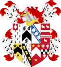 - ↑ Queen's College, Oxford, MSS 137](a). On the occasion, he was granted arms with eight-quarters. The 1st contained his new arms: Ermine, on a canton Gules, a fusil Argent. The 2nd contained the ancient arms of White of Truro. The remaining six quarters contained the arms of some of his “Assistants”. This marshalling, other than being unorthodox, produced minute detail unsuitable for the New World Tapestry canvas. Therefore White (ancient) of Truro is depicted (Poptarts of 1587).