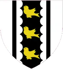 Arms: Argent on a pale engrailed cotised plain Sable three martlets Or.[3]