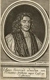 John Wilkins FRS (14 February 1614 – 19 November 1672) was an Anglican clergyman, natural philosopher, and author, and was one of the founders of the Royal Society. He was Bishop of Chester from 1668 until his death.