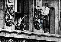 John William Warde was a 26-year-old American bank clerk from Southampton, New York, who committed suicide on July 26, 1938. He leaped from a window ledge of the 17th floor of the Gotham Hotel at 5th Avenue and 55th Street[1] in Manhattan. The son of a Long Island express agent, his 12-hour[2] dilemma before jumping held 300 New York City Police Department officers at bay. They were afraid of making a bold move that might cause Warde to jump.[3]