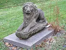 Wilson made a series of nine lions in freestone early in his career. The location of six of these lions is unknown. Three of these lions remain in Pictou County, Nova Scotia.[26] One of the lions is on the grounds of the Lionstone Inn, an establishment named after the sculpture.[27] The other two lions are at the Carmichael-Stewart House Museum. One of these Wilson made at the age of 15 before he moved to Boston (1891). The other lion at the museum Wilson made while studying in Boston (1902). The sculpture representing Great Britain in South Africa during the Boer War and was noted as being "an admirable piece of modelling from one of his age".[28] In March 1902 the Royal Canadian Academy of Arts accepted this lion for its annual exhibition in Montreal.[29]